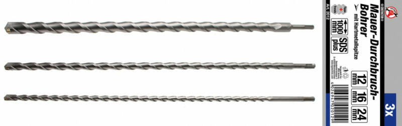 - Átmérők: 12 - 16 - 24 mm - Karbid bevonatú hegy - 1000 mm hosszú minden darab SDS szár