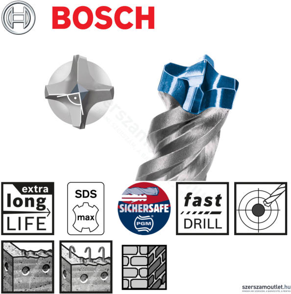 fúrószár normál beton és vasbeton fúrására használható. Bármilyen gyártmányú, SDS max befogású fúrókalapácshoz