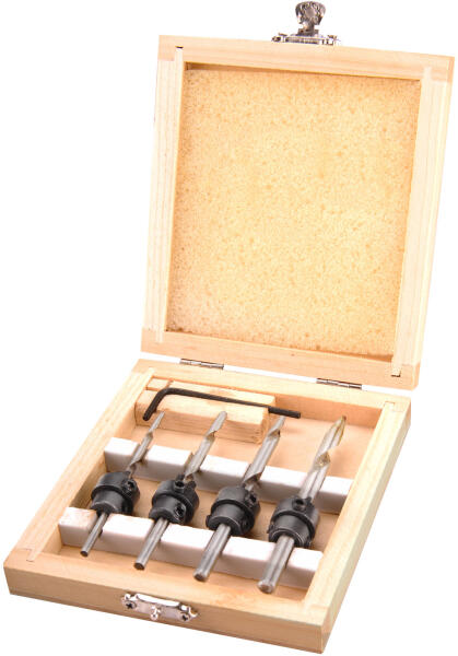 Extol fafúró klt. 4db, süllyesztővel (konfirmátor csavar előfúró) 3-4-5-6mm, hossz 76-94mm, fadobozban
