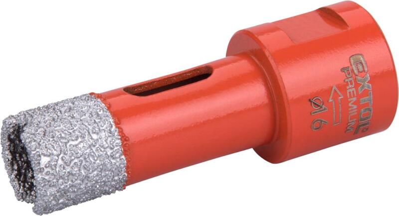 gyémánt koronafúró, átmérő 16 mm, menet M14. információk max. fordulatszám 13 000 ford/perc. műszaki paraméterek átmérő 16 mm, menet M14. márka EXTOL PREMIUM.