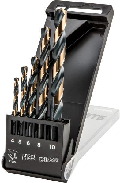 HSS-CNC fém fúrószár, hegyszög 124°, "Pro-Tec", 4.0, 5.0, 6.0, 8.0, 10.0 mm, 5 db-os készlet.