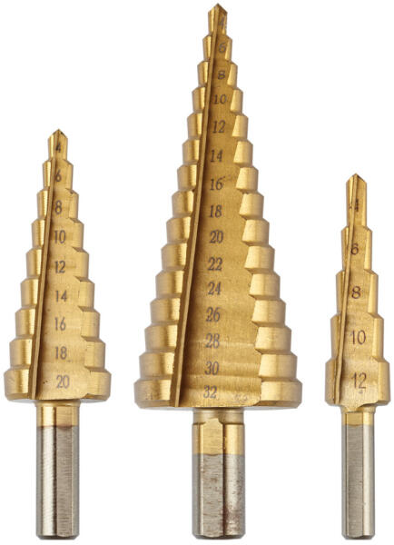 GRAPHITE Lépcsős fúró készlet, 3db-os, HSS-titán, 4-12mm, 4-20mm, 4-32mm (54T300)