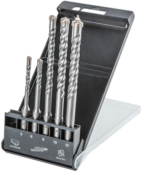 SDS Plus betonfúrószerszámkészlet, quatro, 5 db-os készlet. - 5, 6 x 110 mm + 8, 10, 12 x 160 mm