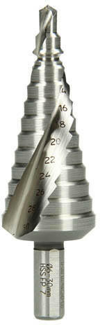 A Hikoki lépcsős fúrófejet kifejezetten nagyobb átmérőjű lyukak vékony lemezekben vagy csövekben történő gyors fúrásához tervezték. Alkalmasak különféle anyagok, például műanyag, poliészter, acél és rozsdamentes acél fúrásához is. Minden lépcsőfúró spirális vágóéle lézerrel élezett. A lapolt hengeres szár biztosítja a kiváló nyomatékátadást és megelőzi a tokmányban történő elfordulást. A Helikoid vágóélű fúrófejek erősen ajánlottak kemény anyagokhoz, például rozsdamentes acélokhoz valamint hűtőfolyadék nélküli fúrásokhoz. A bevonat csökkenti a hőmérsékletet, és így meghosszabbítja a fúró élettartamát. Spirál kivezető: