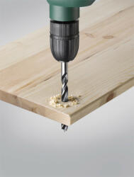 KWB Fafúró készlet, 6 db. + 1db. csavarfej süllyesztővel. 514200 KWB Fafúró készlet, 6 db. + 1db. csavarfej süllyesztővel. (514200)Fa csavart fúró, CV-acél, 2-csavarásos spirál alakú, stabil, egyenesen futó, élénken csavart spirálok, középpontos és vállvágóval, precíz könnyű lyukakhoz, hengeres szárral, ipari minőségű, puhafa és keményfa számára. Méret: 3-4-5-6-8-10mm