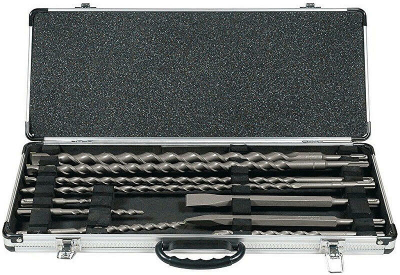 SDS-Plus fúró és véső készlet alumínium kofferben, 10db Az SDS-Plus fúró- és vésőkészlet alumínium tokban kerül forgalomba, és a következőket tartalmazza: Kétélű SDS Plus fúrószárak