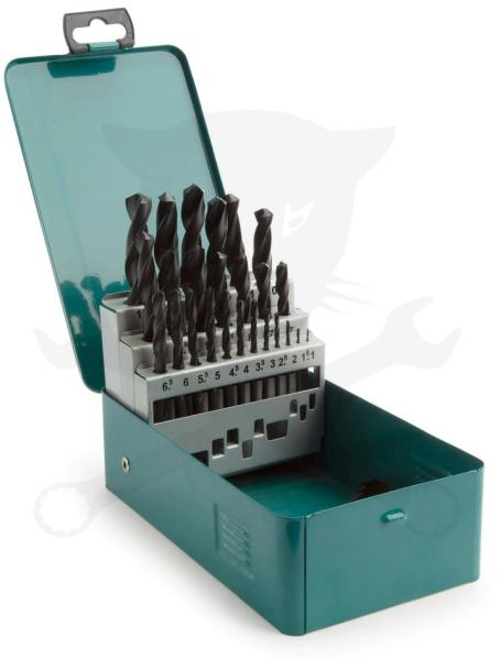 25 db-os hengeres befogású fúrókészlet HSS-R 1 - 13 mm-ig. 1 mm, 1.5 mm, 2 mm, 2.5 mm, 3 mm, 3.5 mm, 4 mm, 4.5 mm, 5 mm, 5.5 mm, 6 mm, 6.5 mm, 7 mm, 7.5 mm, 8 mm, 8.5 mm, 9 mm, 9.5 mm, 10 mm, 10.5 mm, 11 mm, 11.5 mm, 12 mm, 12.5 mm, 13 mm Ez a teljes méretválaszték minden feladatra felkészít, a legapróbbtól a legnagyobb átmérőkig.