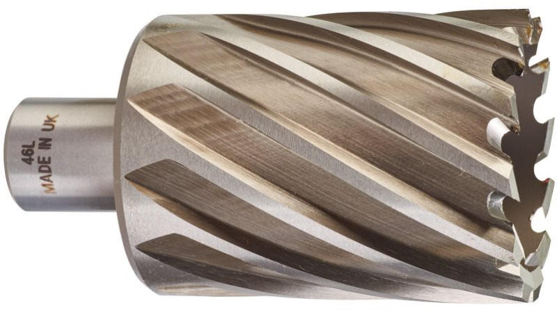 • 100 %-kal gyorsabb - Sebesség- és idő megtakarítást érhetünk el a következő tényezőknek köszönhetően: Először a magfúró az anyagot a lyuk szélén vágja meg a csigafúróval ellentétben, amely a lyukat teljes átmérőjében fúrja. Másodszor a két agresszív kialakítású éles szögenkénti vágóél előnye, hogy gyorsabb előtolást és kisebb vágási ellenállást biztosít.