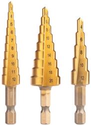 NEO Lépcsős fúrókészlet, 3db-os, HSS-Titán, 3-20mm, hatszög szárral (08-948)