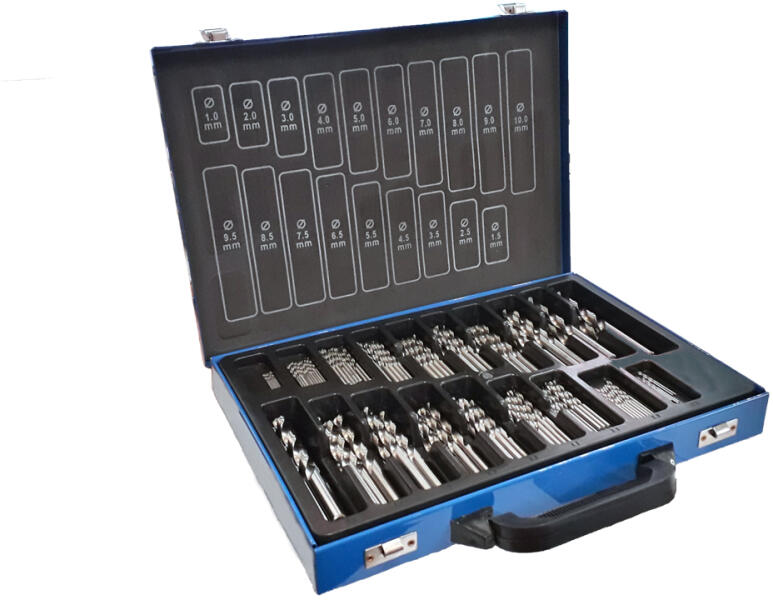 PTG gyártmányú 170 db-os csigafúró készlet polírozott DIN338N szabványszámú HSS köszörült minőségben.