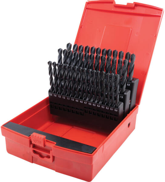 Ipari min'ség. Köszörült forgácshorony, kékfuttatású kivitel. Méretjelölt fémdobozban. Megfelel a BS328:Part1:1986, DIN338N és ANSI B94-11M szabványok el'írásainak. Tartalma (mm): 6.0, 6.1, 6.2, 6.3, 6.4, 6.5, 6.6, 6.7, 6.8, 6.9, 7.0, 7.1, 7.2, 7.3, 7.4, 7.5, 7.6, 7.7, 7.8, 7.9, 8.0, 8.1, 8.2, 8.3, 8.4, 8.5, 8.6, 8.7, 8.8, 8.9, 9.0, 9.1, 9.2, 9.3, 9.4, 9.5, 9.6, 9.7, 9.8, 9.9, 10.0