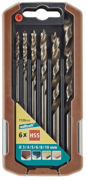 Wolfcraft Spirálfúró készlet Profi, dobozban 6 db, fához, HSS, Ø 3, 4, 5, 6, 8, 10 mm (7120000)