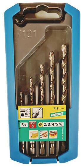 Wolfcraft Spirálfúró készlet fémhez 5 részes, HSS csiszolt, hatszögszárú, Ø 2, 3, 4, 5, 6 mm (7121000)